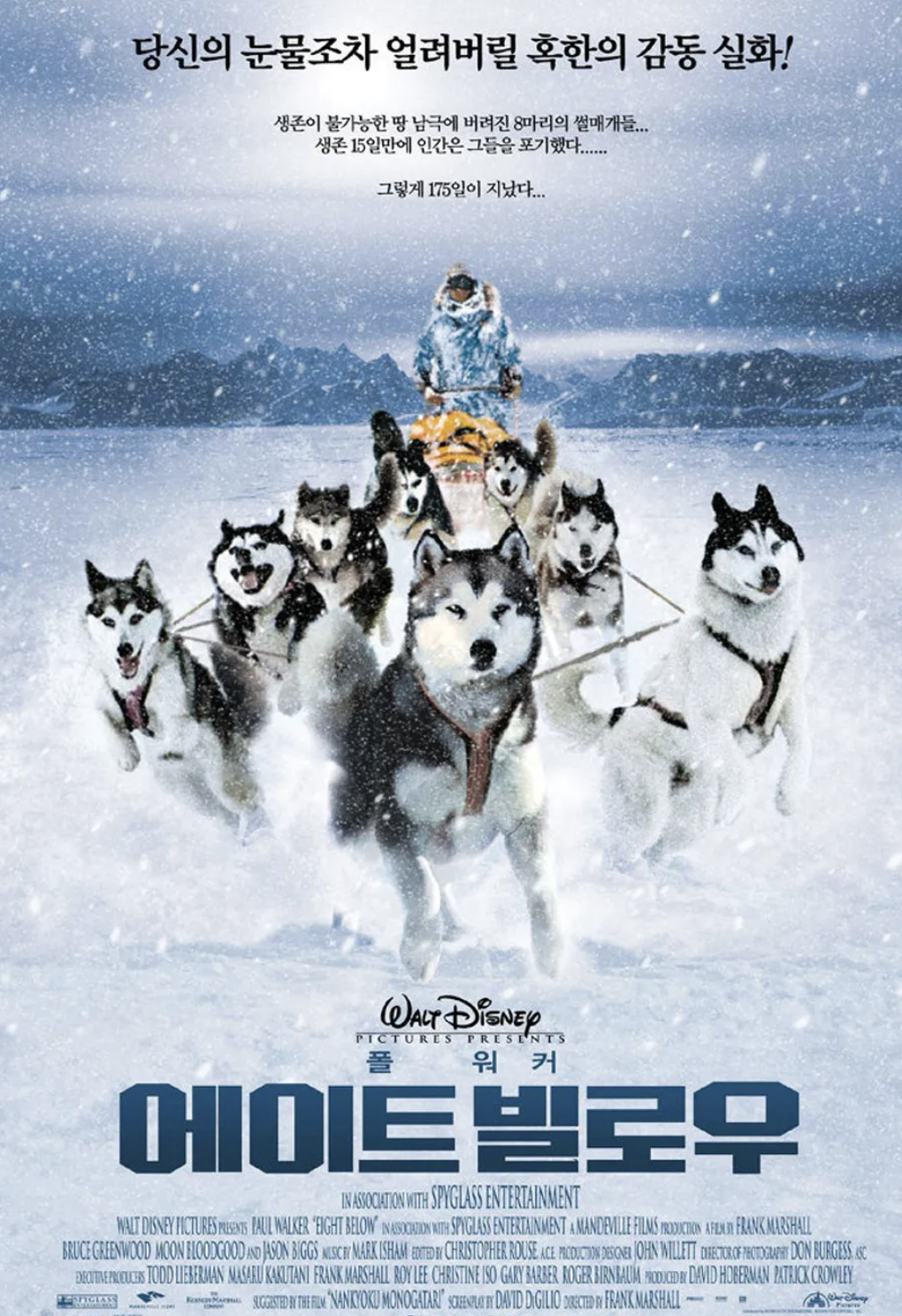 2006년 개봉한 에이트 빌로우 (Eight Below)는 극한의 남극 대륙에서 펼쳐지는 개썰매견들의 생존 이야기와 인간과 동물 간의 깊은 유대감을 그린 영화입니다. 디즈니가 제작한 이 영화는 1958년에 일본에서 실제로 있었던 사할린 허스키 구조 사건을 모티브로 하였으며, 이를 현대적으로 재해석해 더욱 감동적인 서사로 재탄생시켰습니다. 이 영화는 폴 워커 (Paul Walker)가 주연을 맡았으며, 개썰매팀을 운영하는 열정적인 탐험가 제리 셰퍼드 역을 연기했습니다.